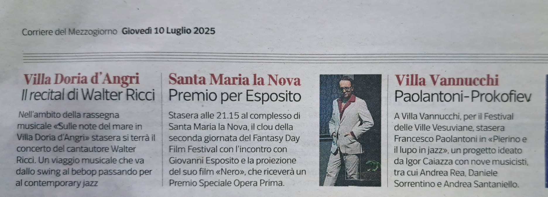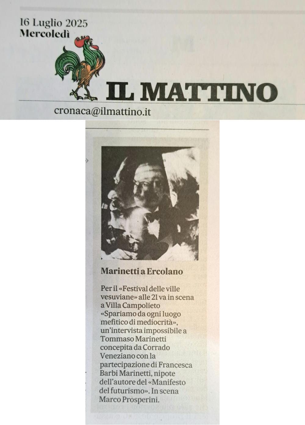 - Il Mattino, mercoledì 16 luglio 2025
