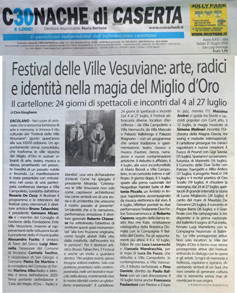 - Cronache di Caserta, sabato 21 giugno 2025