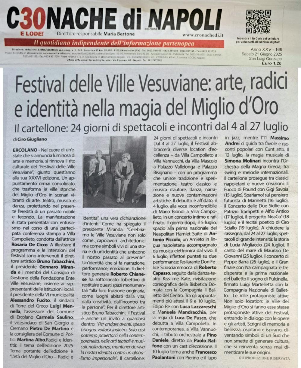 - Cronache di Napoli, sabato 21 giugno 2025